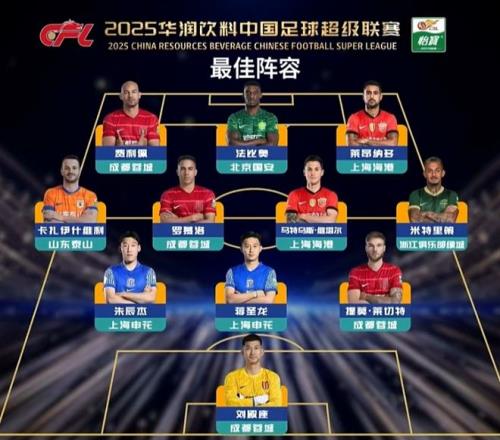 中超最佳阵容揭晓!蓉城成大赢家,3线4人入选,海港申花各2人