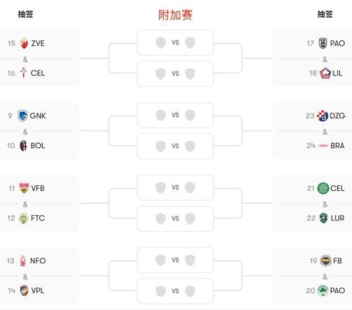 附加赛抽签将于北京时间1月30日(本周五)20点进行,两回合比赛则在3周之后:首回合2月19日,次回合2月26日(当地时间)。