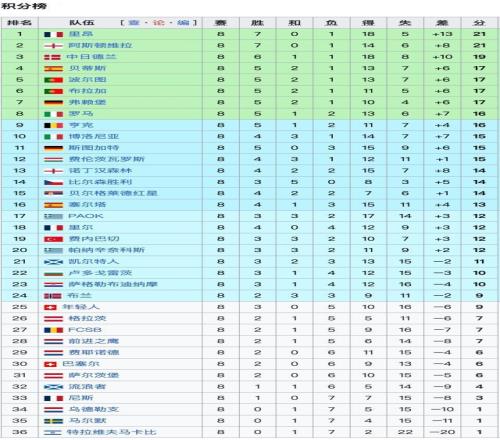 欧联杯联赛阶段最终积分榜